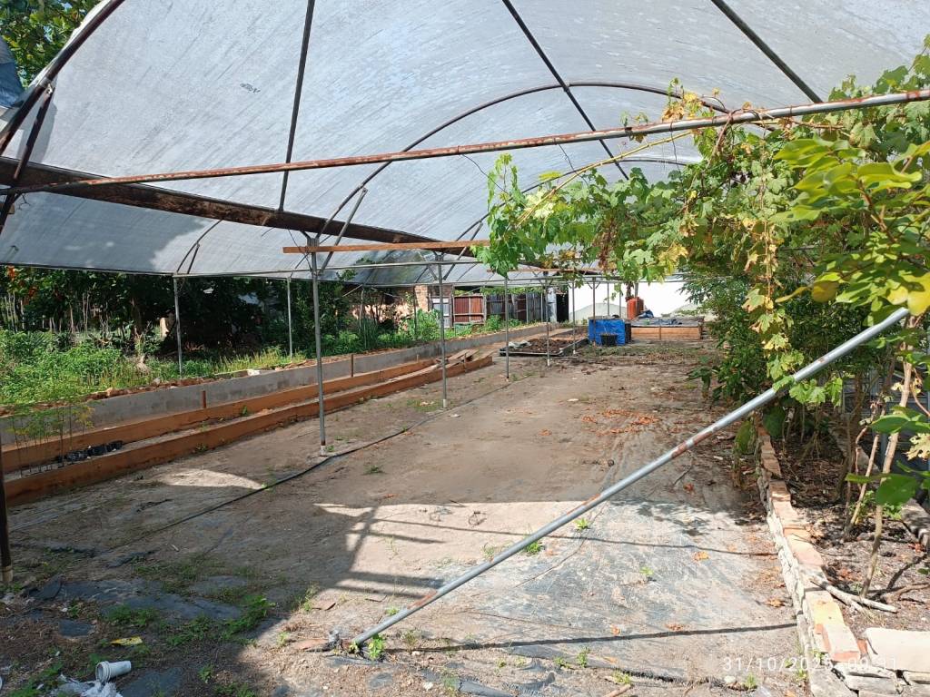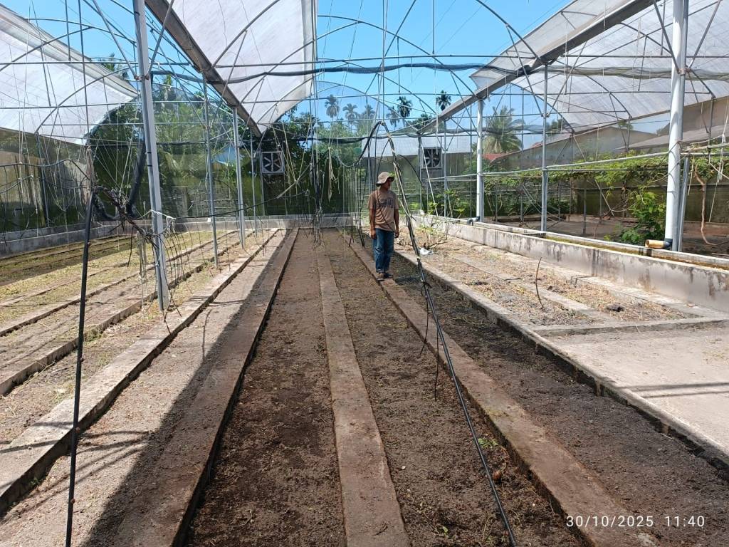 C. Gambar Lokasi Lahan C ( Gambar dibawah ) Dengan rincian berikut : Luas 500 M2 untuk budidaya sayur dan buah. Asal aset bangunan program Infratani Green House Bantuan DEKS Bank Indonesia tahun 2020 dengan total luas 500 M2. Yang 200 M2 digunakan khusus untuk budidaya buah anggur dan 300 M2 untuk sayur dan buah yang lain dengan jumlah 12 bedengan, 10 yang panjang dan 2 yang pendek. Setiap bedengan besar yang 10 bedengan dengan ukuran panjang 21 M dan lebar 25 CM dan bedengan yang pendek dengan ukuran 18 M dan lebar 25 CM.