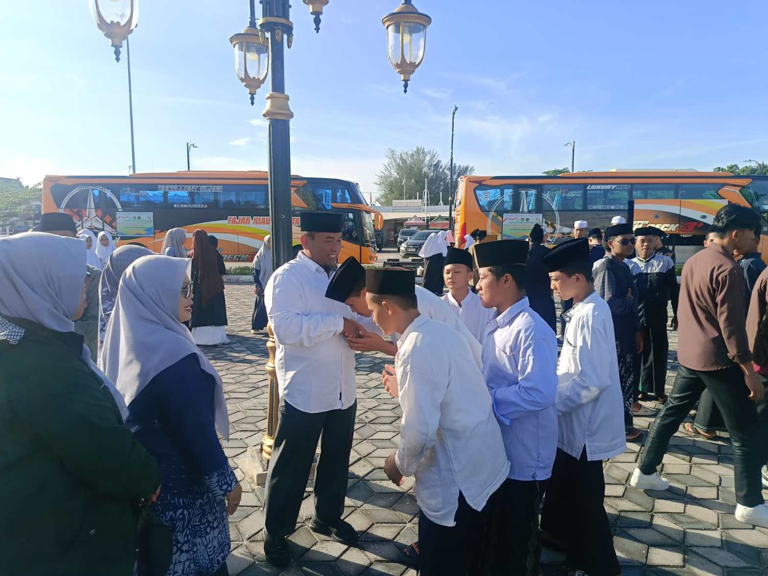 Dumai, Selasa, 21 Oktober 2025 – Pelepasan Pemberangkatan Santri FKPP Dumai Menuju Hari Santri Nasional Tingkat Provinsi Riau di Kabupaten Kuansing Bersama *Wakil Wali Kota Dumai Bapak H. Sugiyarto_ ( Perwakilan Pengurus, Santri Wustha/SMP dan Aliyah/SMA Pondok Pesantren Al Amin Dumai) Selasa Pagi, 21 Oktober 2025 di Halaman Masjid Dumai Islamic Center. Pimpinan Pondok PesantrenLanjutkan membaca “Ponpes Al Amin Dumai Hadir di Hari Santri 2025 Provinsi Riau di Kuantan Singingi”