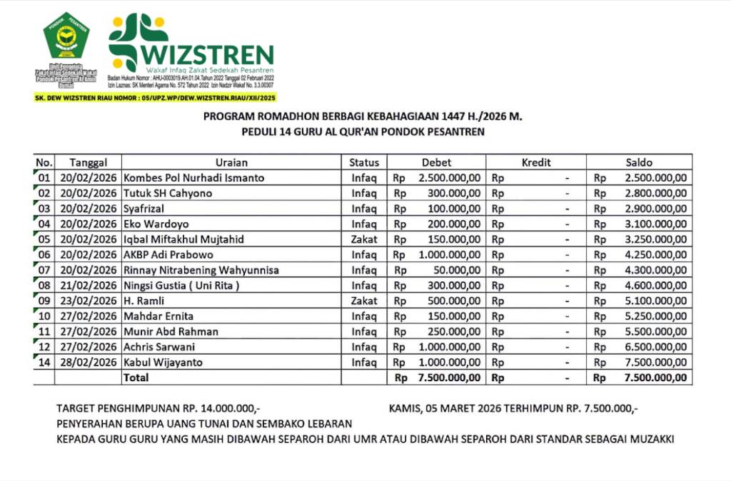 - Bp. Hasan Basri Usman Dumai Rp. 150.000,- Tgl. 09/03/2026